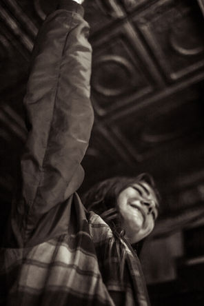 KAREN GHOSTLAW POMARICO: I believe that to be a good photographer it is important to study all the arts. When taking a photograph, I see many different influences and pieces of a puzzle. When the pieces fall together, the shutter is released. I see architecture, geometry, light, color, space, volume, movement, dance, gesture, personality, and humanity, all presented to me through an aperture, in a box. I study dance, I learn physicality and gesture in movement and the stories they tell. When I am in the street shooting or when I was shooting the Rebirth Brass Band, I understood their hand and body movements and how I wished to capture them. Music for me is about the rhythm I see in the World. I think of Steve Reich and his “Music for 18 Musicians”, each instrument having its own rhythm, moving in and out of unison. As I take my photo, all of the chaos becomes synchronized and everything fits, light, shadow, the band on the stage. I’ve found my moment, when I physically feel part of what I am photographing. I don’t need to think about releasing my shutter, it just happens, all is right, my camera and I are one, I am part of the process, thoughtless.