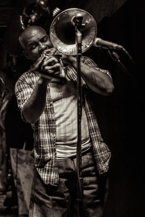 “When you think of New Orleans you visualize food, music and a love for art. Arriving in New Orleans I relished in meeting these unique people and their passion for celebrating life. Recommendations abound in this town, but one made me curious, a club that was not to miss for music, off the beaten path, where I would find the real music of New Orleans, the Maple Leaf Bar. In Pigeon Town, a little neighborhood three blocks from the Mississippi River, the Oak Street neighbors of the bar were setting up buffet tables in their front yards, while smokers were being fired up in the street, welcoming all whom arrived. Headlining was the Rebirth Brass Band, everyone there seemed totally pumped as the bar filled waiting for the band to play late into the night. Obviously not a regular, camera in hand, I made my way to the front of the crowd and stage. The crowd guided me to front row center, welcoming my passing them.”