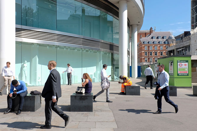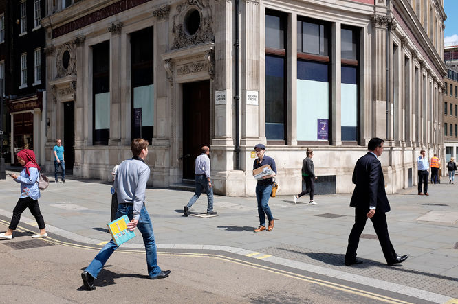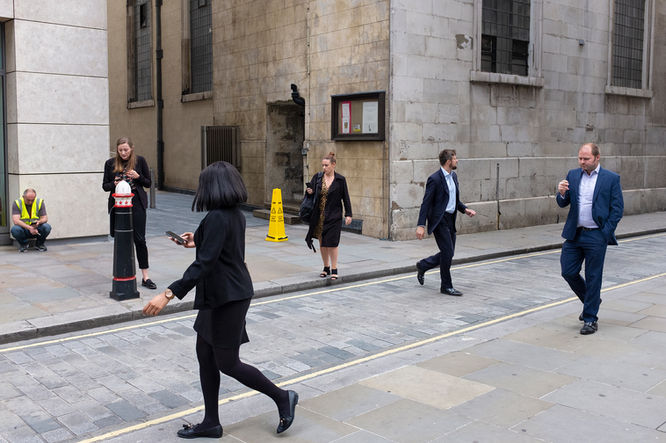 SM21: I work with Fuji x-series cameras with 35mm equivalent lenses. I use a Nikon with wide angle lenses also. The only attachment I have is a spirit level mounted on the shoe - useful if I want to shoot from the hip or when I can’t see the on-board camera spirit level. Depth of field is always a concern for me given the complexity of what I’m attempting to photograph. In changeable London weather conditions, x-series cameras are pretty good when it's sunny, but at wider apertures they can soften badly at the image edge.