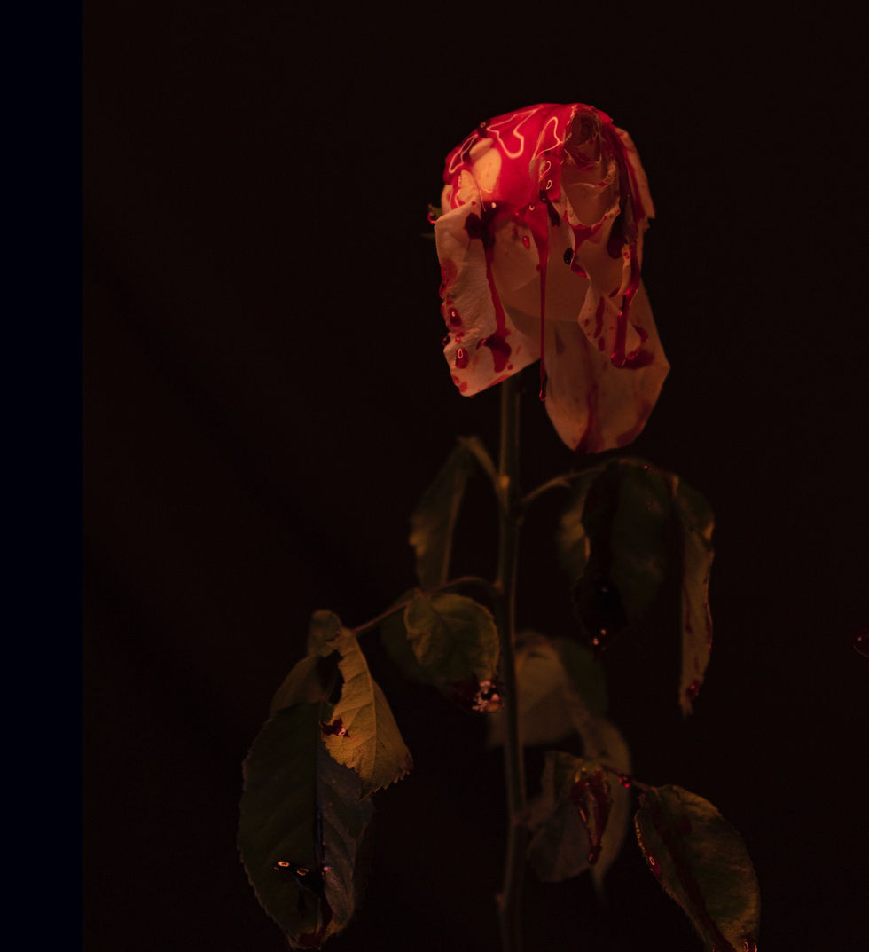 “Like so many other artists during the covid lockdown, I had to find another way of expression in photography. We have lovely gardens, so I found myself peering down to earth on the most elemental level–from seedling to bud to flowering. But like the beauty of this country, we have been scarred by the poisonous diatribes of those who need power, and have the power destroy souls. So, in the end, I made these flowers drenched in blood. The beauty is still apparent, but the flesh is still wounded.”