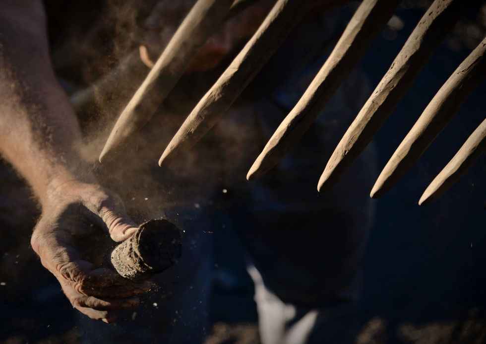 A hard job, between sweat and smoke, no distractions are allowed for the entire process, where the charcoal pit is kept under control day and night.